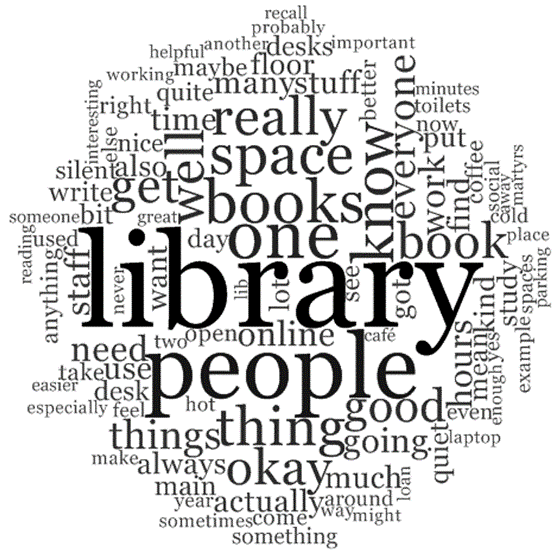Using the list of sign-ups for focus groups, I then sent an email round asking for participants’ availabilities for the coming week, so we could arrange a convenient time. Once I’d received the replies, we picked a time, booked a study room, and went ahead with the focus groups. I ran two groups, with a mixture of Postgrads and Undergrads. Running a focus group is a difficult task sometimes, and it is interesting to see which parts of discussion are most important to people. Generally, lots of the students agreed on certain issues, although there were some definite differences of opinion, which is no bad thing! Participants received a voucher for taking part, and the information they gave proved insightful for my research.